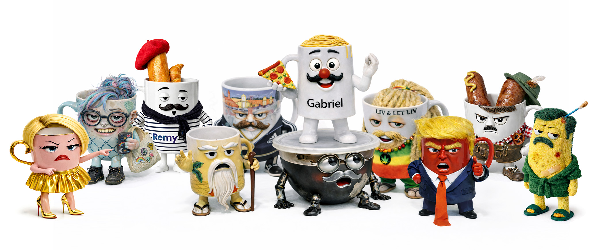 When plastic containers are thrown away, the mugs argue about order, color and “harmony”.